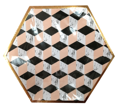 HALLMARK DORADO & SALMON MARMÓL PLATOS DESECHABLES - 7 PULGADAS - 8 UNID.